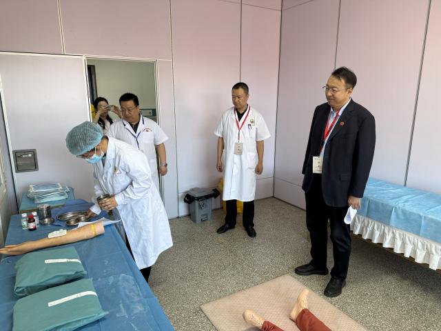 6月3日,我院2025届中医学专业毕业生临床技能考核在医学部六楼医学院临床技能实训中心(国家医师资格考试实践技能考试基地)进行。医学部常务副部长刘斌钰,我院党委负责人白振军,副书记董文华,副院长李亮,指导巡查了考核全过程。经过考务组有序调度、考官们认真评分、志愿者参与,圆满完成了考核任务。