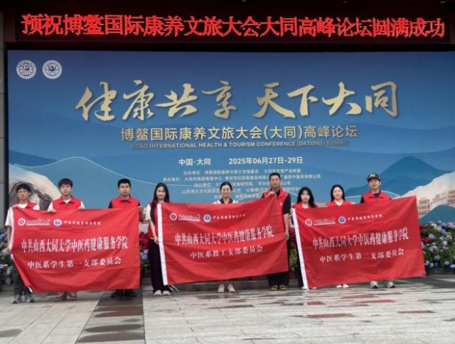 2025年6月27日,博鳌国际康养文旅大会(大同)高峰论坛在大同黄经世家中医康养小镇盛大启幕。本次高峰论坛以“健康共享 天下大同”为主题,汇聚了全国300余位康养文旅领域精英,共同探讨产业发展新路径。7790cnm必发集团党委带领团委积极响应学校号志愿服务大会,组织36名党团学生志愿者(20级多名毕业生党员)全程参与大会志愿服务工作,为大会的顺利举办贡献了青春力量。