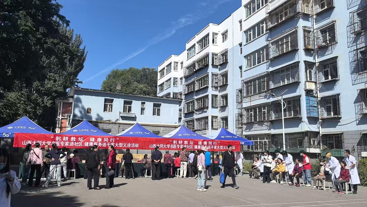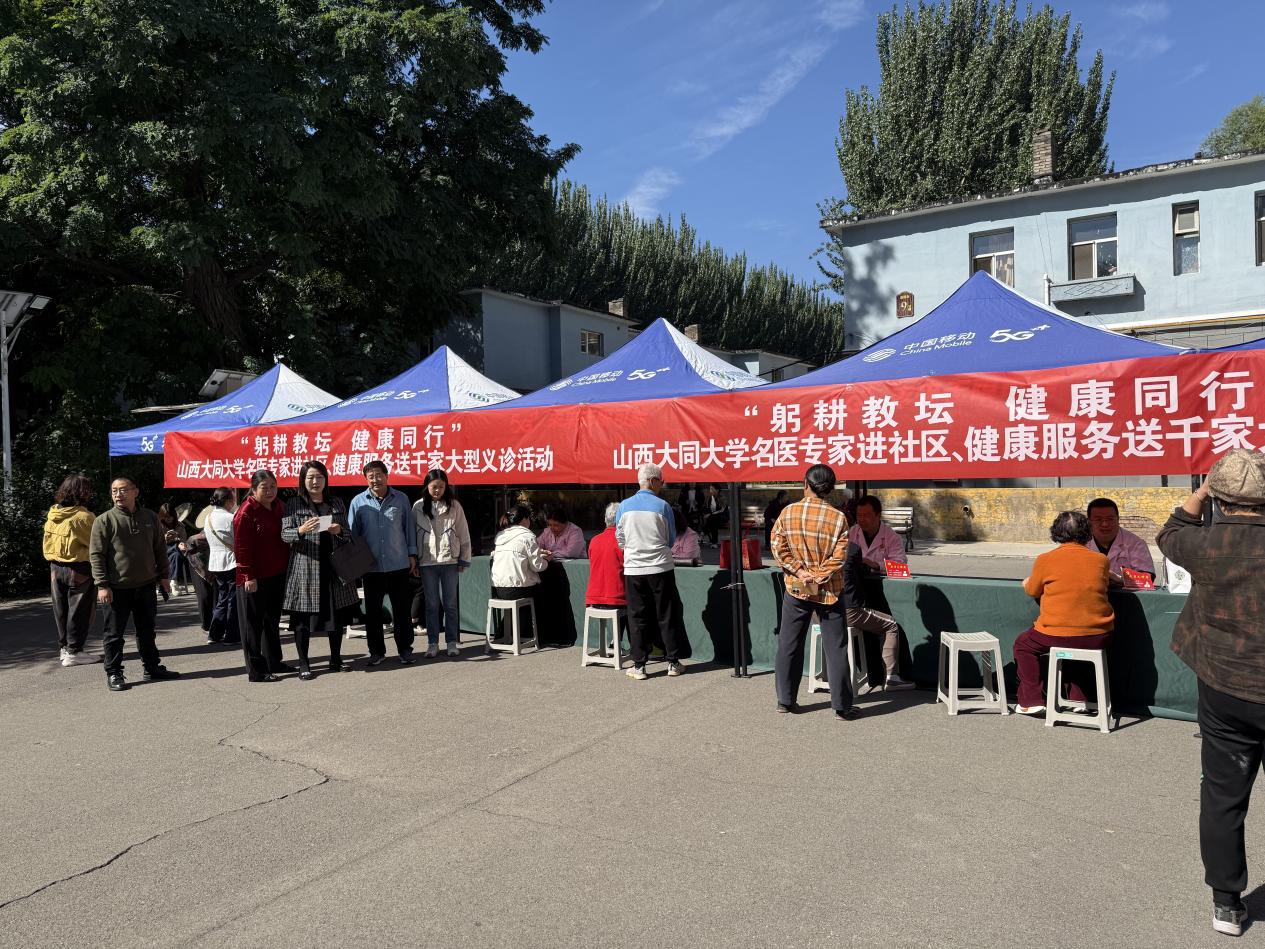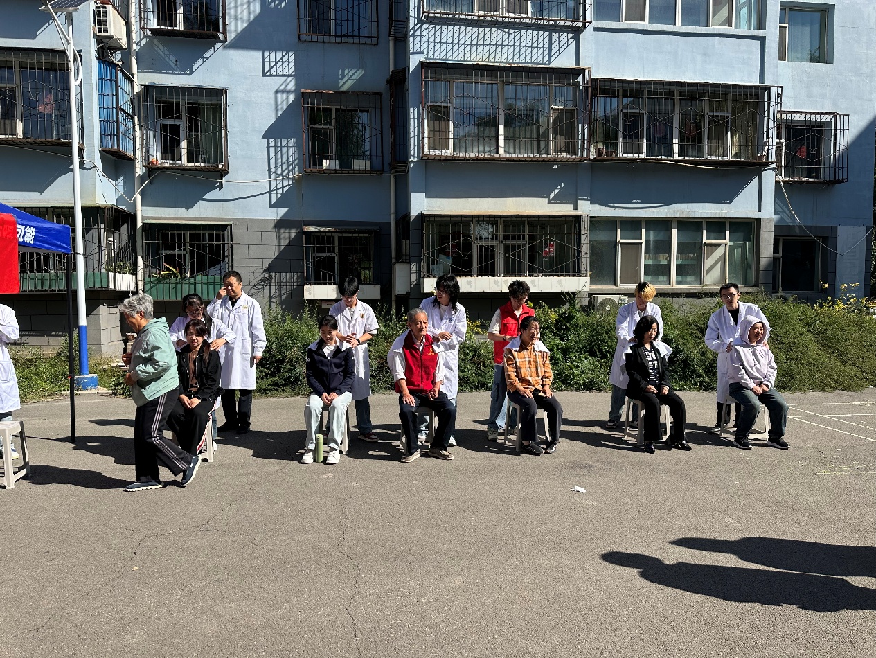 义诊现场设在新平旺校区家属区羽毛球场,一早便排起长队。师生团队分工明确,医师们耐心为前来咨询的群众搭脉问诊,详细询问病史、分析病因,开具个性化中药处方与针灸推拿治疗方案,学生们在医师指导下为群众测量血压、普及中医养生知识,讲解秋冬季节防寒保暖、饮食调理的要点。
