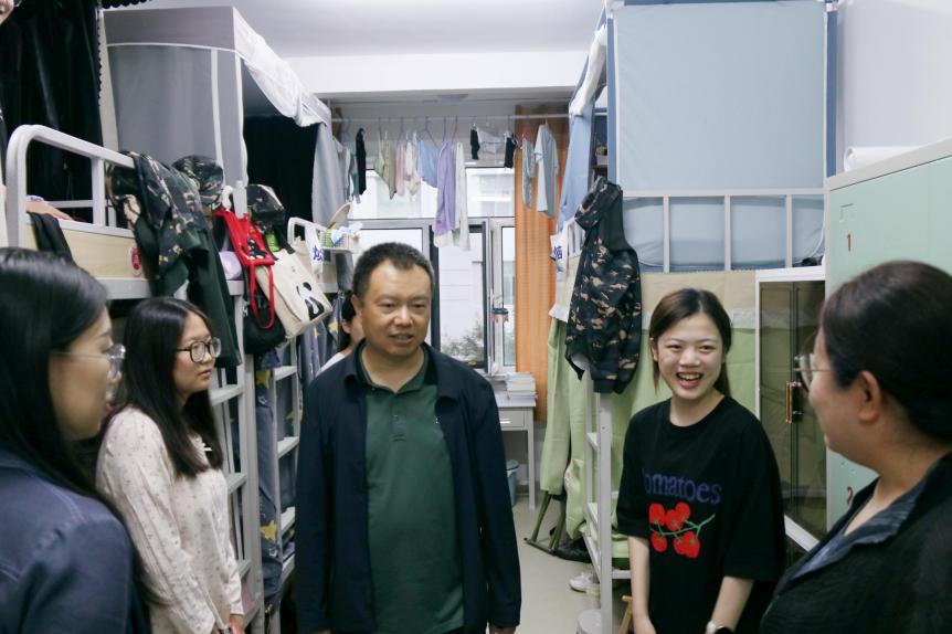 走访过程中,学院领导和老师亲切询问同学们入学以来的生活状况,细致了解大家是否适应了新的环境、有无急需解决的困难,并重点围绕住宿安全、卫生习惯、问题反馈渠道等与新生进行了交流。白院长特别叮嘱同学们要高度重视用电与财物安全,保持个人及宿舍整体整洁,共同维护良好的居住环境。杜婧老师和秦美君老师就学习规划、社团参与等方面与新生展开轻松交谈,鼓励大家积极融入集体、互帮互助,尽快完成从高中到大学的过渡。
