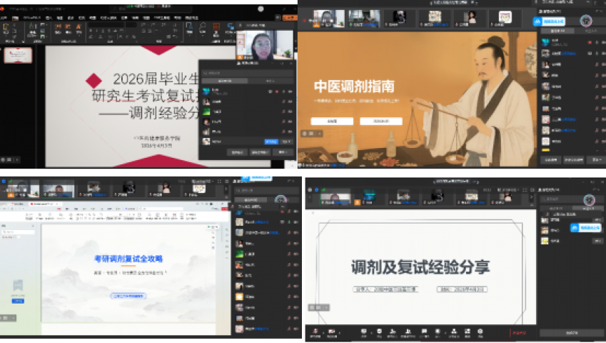 分享会邀请了有丰富调剂经验的20级优秀毕业生作为主讲人,他们从不同角度分享了调剂过程中的注意事项和宝贵经验。刘佳雨以“中医调剂指南”为主题,详细讲解了一志愿落榜后的心理调适方法,以及如何摆正心态、逆风翻盘的策略。他强调,面对挫折,同学们要保持积极乐观的心态,合理规划未来,充分利用各种资源,为成功上岸打下坚实基础。郝雨欣则围绕“重视调剂复试”这一主题,提醒同学们在调剂过程中要有备而来,把专业功底亮出来。他建议同学们不仅要针对性地备考科目,还要注重英语与面试的练习,全力以赴不放松。更是结合自身经验分享了心态的重要性,不要因为他人成绩的压力而放弃调剂的机会。盖三博分享了自己的调剂及复试经验。她详细介绍了调剂前的自我定位、明确目标以及排除法等实用技巧,帮助同学们在众多调剂信息中筛选出最适合自己的选项,并有策略地报考,确保自己成功上岸。盖同学还强调了复试准备的重要性,建议同学们提前准备好专业知识问答,利用AI总结PDF等方法提高复习效率。