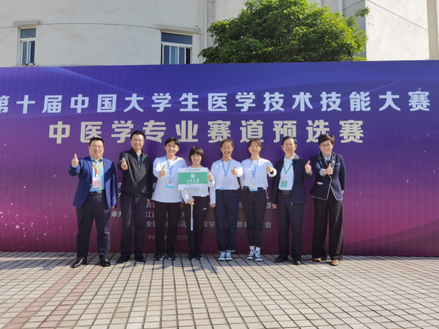 2021年4月8日,在参加完医学部举行的出征仪式后,我院代表队在王自润院长带领下,一行8人前往“军旗升起的地方”江西南昌参加预选赛。4月9日预选赛在江西中医药大学隆重举行,来自全国50支代表队同台竞技,激烈对决,我院选手经过紧张激烈的比拼后荣获团体三等奖。