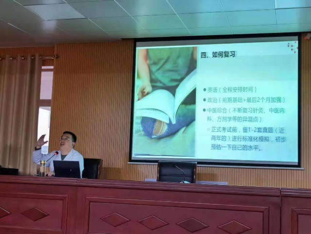 2021年12月27日,我院在仁和楼五楼会议室举办2023届毕业生考研前期指导会,中医系主任王政老师主讲,2018级全体学生参会。