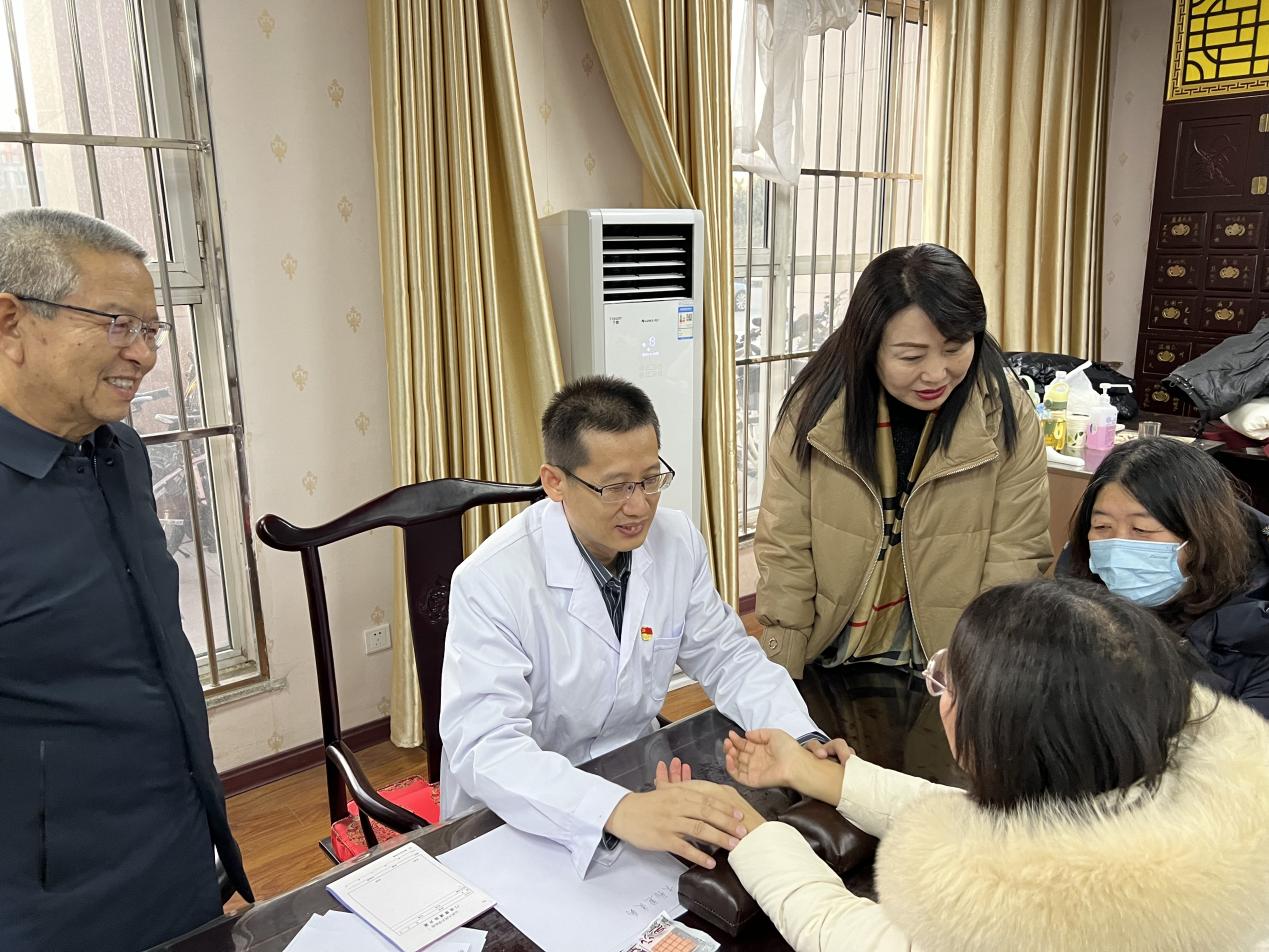 图2侯主席(右三)、石书记(左一)慰问义诊指导老师李亮副院长义诊活动