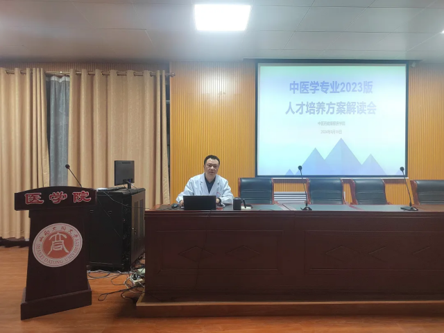 最后,他着重从毕业要求、学制学分、实践教学特别是第三学期实践教学,详细解读了中医学专业2023版人才培养方案,并且要求2023级同学们对毕业要求的学分绩点要做到心中有数。