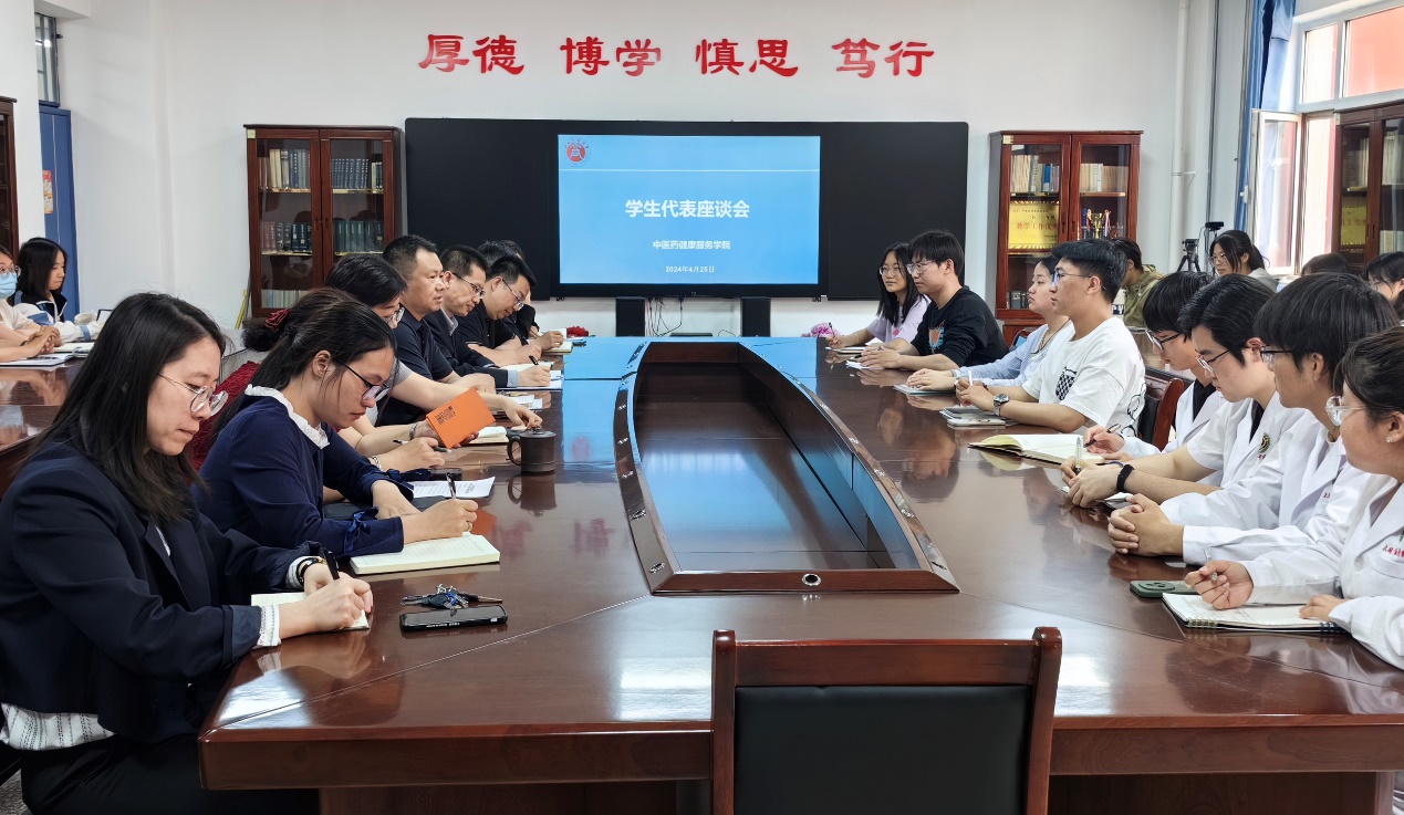 4月25日下午,我院党委在仁和楼四楼C403会议室召开学生代表座谈会。学院党政负责人白振军、副院长李亮、团委书记力妙芳、团委副书记谢丽君、中医系主任王政、2020级—2023级各班辅导员和学生代表参加会议。