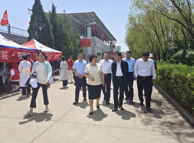 开幕式结束后,校党委书记赵水民、校长姚丽英等校领导一行到我院服务点视察,品尝我院学生们制作的清暑酸梅饮,了解药物组成和功效,对我院特色保障工作给予认可,并希望我院利用好大学生创新创业平台,发挥中医药特色,研制出四季中药养生饮品,服务好师生员工。