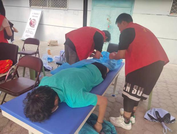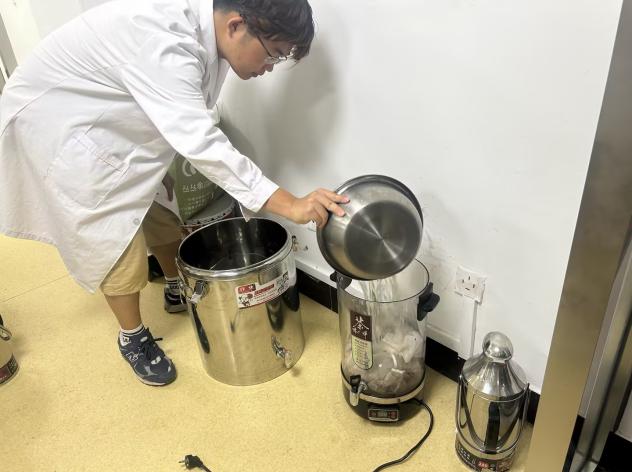 赛前,学院领导高度重视,提前谋划,提前准备,校医院提供药物,在专业教师夏晓艳博士和左祥宇博士的指导下,志愿者们精心准备清暑酸梅饮的制作,不断完善中药配方、改善口味,经过一段时间的摸索,该饮品终于能适应大众口味,不仅口感清爽,更具有清解暑热、生津止渴的功效。炎炎夏日,为保证第一时间让运动员和广大师生品尝上饮品,志愿者们在早上6点就开始了准备工作,全天不间断熬制和供应。此外,在赛场上,提供推拿服务的志愿者们坚守岗位,提供参赛后运动员的推拿放松治疗。