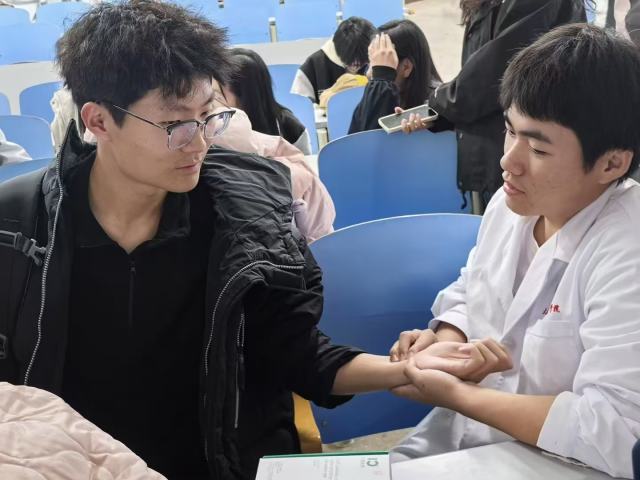 除了理论讲解外,活动还设置了互动环节。同学们可以在现场体验中医诊疗、把脉舌诊等。许多同学表示,通过这次活动,他们对中医有了更深入的了解,纷纷表示感受到了中医的神奇魅力和独特价值,也学会了如何在日常生活中运用中医知识来保护自己和家人的健康。