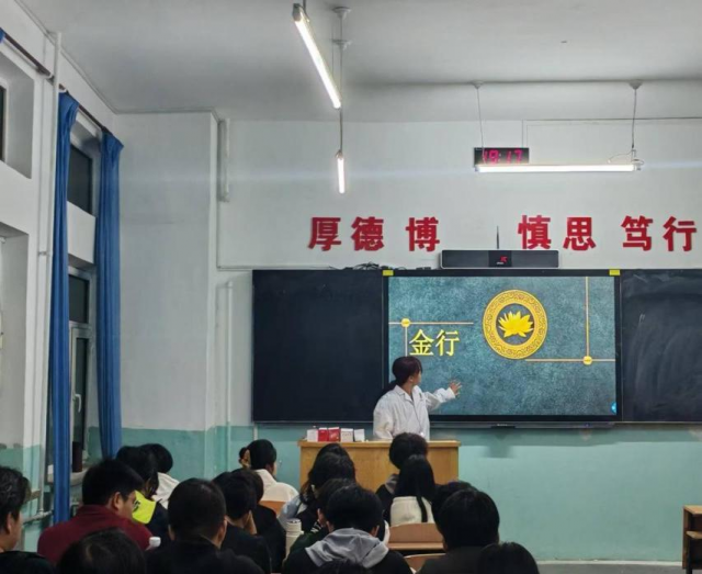 习近平总书记指出:中医药学是“中华民族的瑰宝”,是“打开中华文明宝库的钥匙”。为深入贯彻习近平总书记关于中医药工作的重要论述,引导青年大学生学习中医药知识,传承中医药文化,我院积极开展“第二课堂”秋季中医宣讲进校园活动,本组宣讲团以“五行养生”为主题,于10月24日在物理与电子工程学院开展宣讲,让更多同学理解中医健康养生的内涵与魅力。