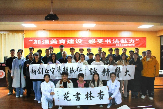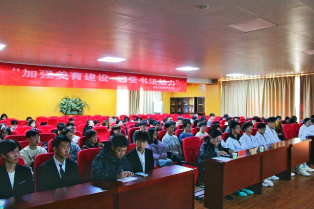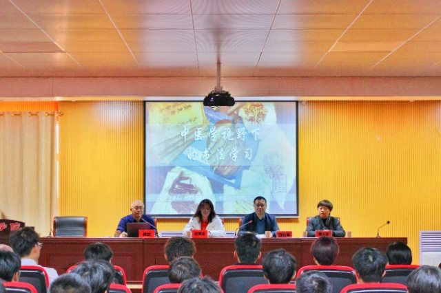 为贯彻落实立德树人根本任务,发挥我校综合大学专业优势,促进学科交叉,拓展和丰富育人模式,增强学生的综合素养。我院结合中医药特色,将传统书法与中医药文化相融合,于11月7日下午,在仁和楼五楼报告厅举办了一场主题为“加强美育建设,感受书法魅力”的讲座。美术学院党委书记任雪莲、书法系主任胡武应邀参加。我院党政负责人白振军、党委副书记董文华、团委书记力妙芳出席,23级、24级中医学子到场聆听。