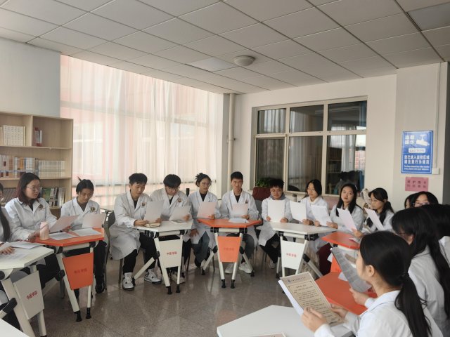 在读书分享环节,18名同学分享了《黄帝内经》、《本草纲目》等中医类典籍的学习心得,分享了廉洁教育类书籍《海瑞传》《本草“廉”心》等作品的阅读体会,讲了唐代孙思邈、元代王好古廉洁行医的清廉故事,弘扬了廉洁文化。