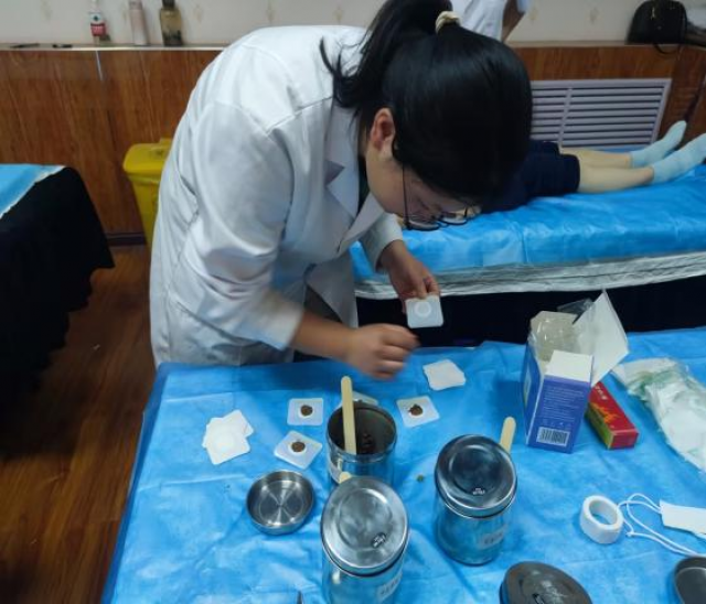三伏贴是我国传统中医药疗法中的瑰宝,它基于中医“春夏养阳”和“治未病”的深厚理论,利用夏季阳气旺盛、人体阳气浮于体表等特点,在特定穴位贴敷三伏贴,可温阳理气、驱散内伏寒邪,增强人体阳气和免疫力,对冬季易发作或加重的如慢性支气管炎、过敏性鼻炎、风湿与类风湿性关节炎、痛经以及胃肠等疾病起到预防和治疗作用。在40余天的服务中,充分发挥中医优势,我院的专业教师团队耐心地为前来咨询和贴敷的人员讲解三伏贴的原理和疗效、贴敷时间、适用人群及注意事项,并根据每个人的体质和健康状况,认真选穴、贴敷,量身定制贴敷方案,确保每位教职工和群众都能享受到中医优质服务。