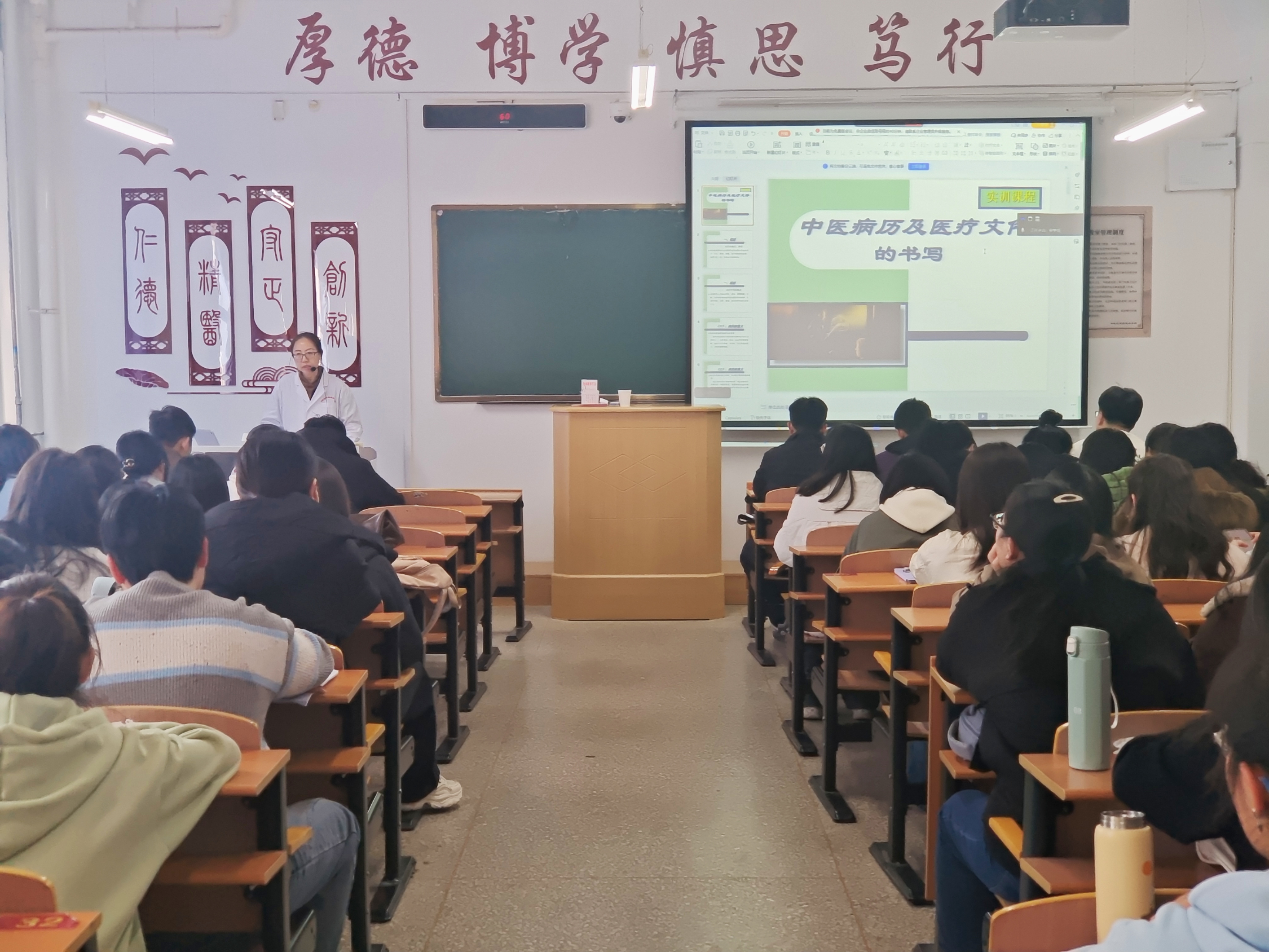 为切实提升 2025 届毕业生考研复试中的病案写作能力,紧密贴合中医学专业认证标准及相关要求,学院于 3 月 8 日下午 4 点,在仁和楼 c412 教室针对性的组织病案书写培训讲座。本次讲座特邀副主任医师、中医内科学资深教师孟燕担任主讲,为同学们答疑解惑,指引方向。