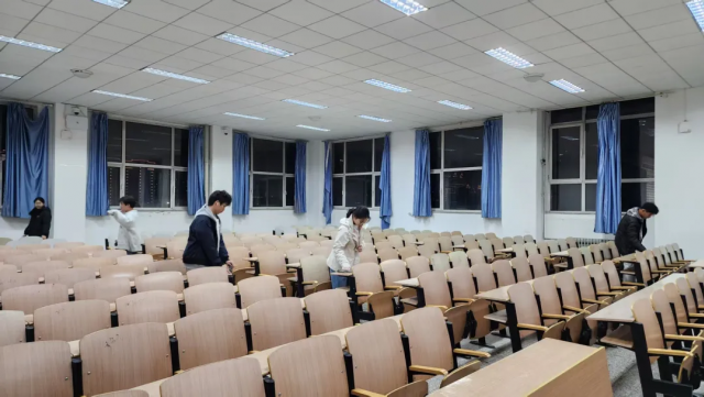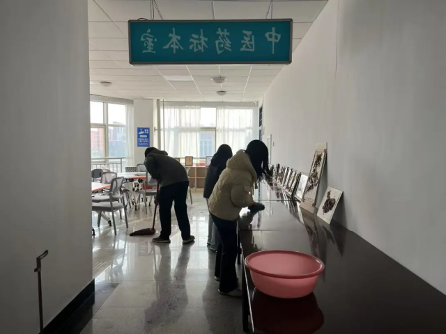 清晨8时,各宿舍和公共空间已是一片忙碌景象,中医学子兵分多路,他们手持扫帚、抹布等工具,对走廊、楼梯、教室、及实验室等场所展开细致清洁。面对堆积的灰尘、零散垃圾,大家默契配合:有人负责擦拭窗台黑板,有人搬运清理废弃物,还有人专门维护绿植盆栽。短短两小时内,宿舍焕然一新,公共空间恢复了清爽整洁的面貌。汗水浸湿衣襟,但欢声笑语回荡在每层楼道。团干部们用实际行动诠释了"劳动最光荣"的精神,为校园文明建设写下新篇章。