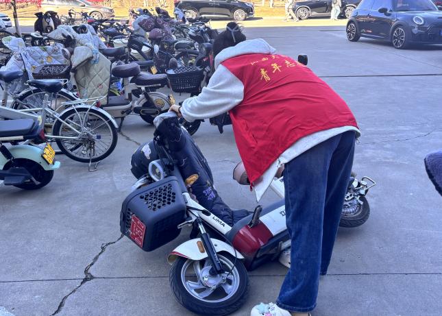 关键时刻,中医药健康服务学院青年志愿者协会迅速行动起来,组织志愿者们投身到扶车行动中。志愿者们不畏沙尘,逆风前行,以实际行动践行着雷锋精神。他们两人一组,或三人一队,弯下腰,双手紧紧抓住车把和车架,将倒地的车辆一辆辆扶起。对于一些较重的电动车,大家齐心协力,喊着口号,一同发力,将其稳稳地扶起并排放整齐。